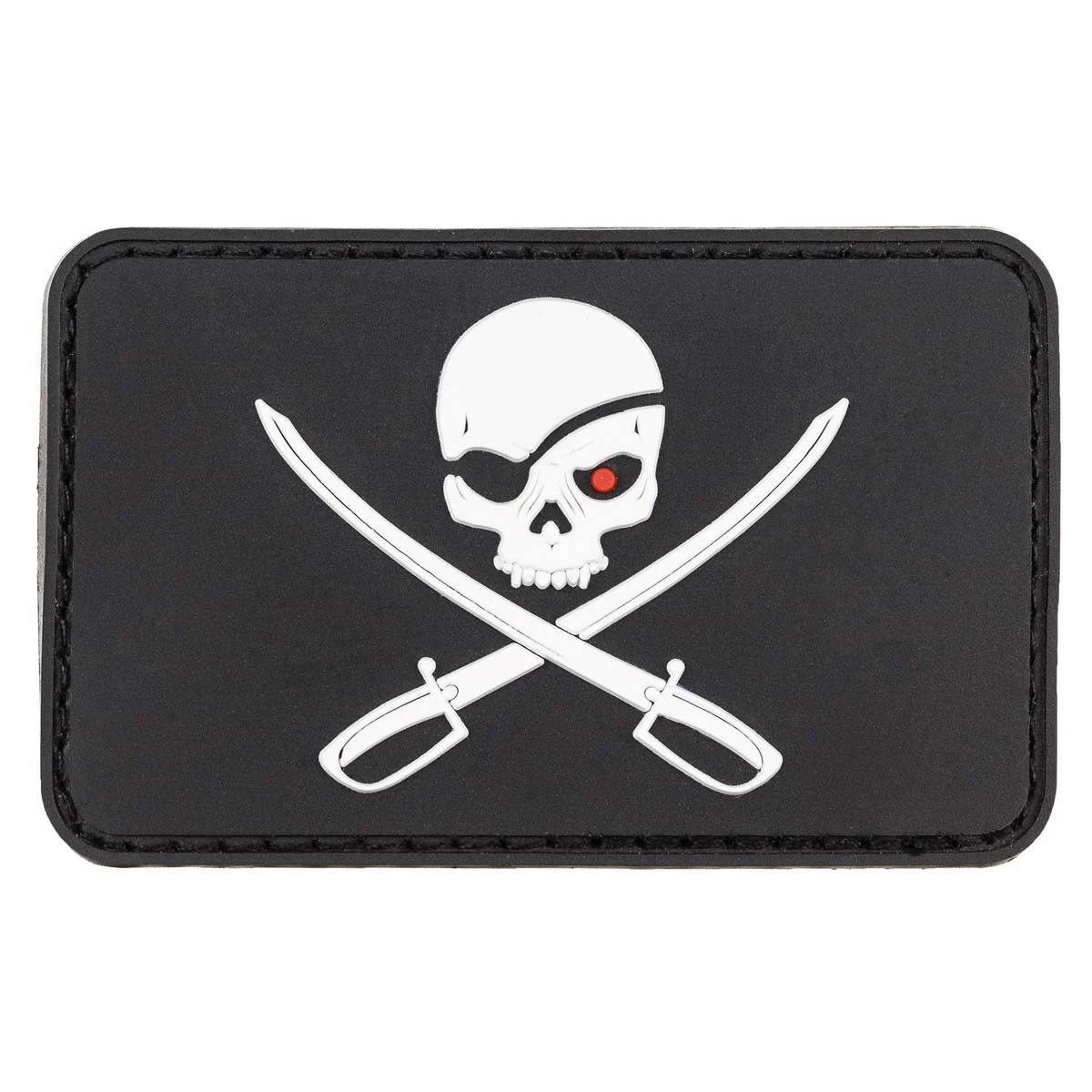 Der flexible und hochwertig verarbeitete 3D Klett Patch Skull mit Schwert von MFH mit Klettrückseite (Haken-Klett). Das Klettabzeichen mit einer Grösse von 8x5cm kann an alle Klettflauschflächen an Caps, Rucksäcken, Taschen oder Kleidung angebracht werden. Mit dem eindrucksvollen Totenkopf-Motiv können sie auch viele Artikel aus unserem Sortiment (bereits mit Klettflächen ausgestattete Produkte) pimpen. Die Patches aus Gummi können abgenommen und gewaschen werden.