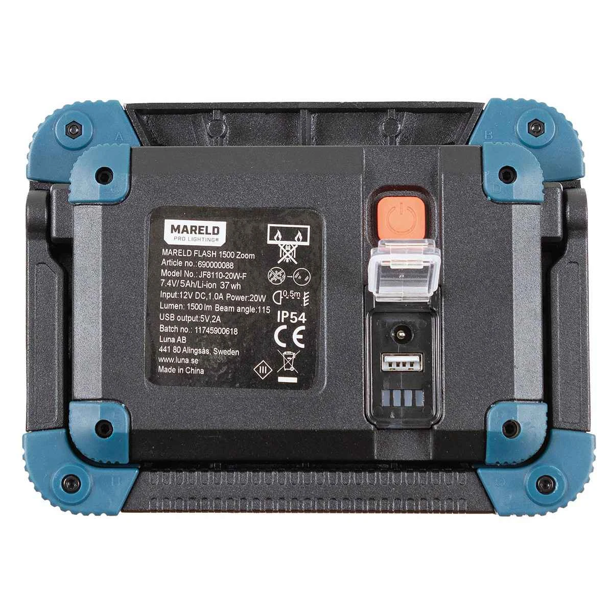 Der Akku LED Outdoor- und Arbeitsstrahler von Marold Pro Lightning ist ein extrem robuster und leistungsstarker LED Baustrahler mit einer Leistung von 20 Watt und einer starken Lichtstärke von 1500 Lumen. Egal ob im Innen- oder Außenbereich, der Strahler sorgt für perfektes Licht an jedem Ort und jeden Fleck. Durch einen Magnet an der Unterseite heften Sie den Strahler an jede Metalloberfläche und richten das Licht auf den entsprechenden Bereich. Dank Zoomrad können Sie die ganze Lichtkraft auf einen Punkt richten, oder das Licht in dei Breite streuen lassen. Der wiederaufladbare Akku mit Ladestandsanzeige und USB-Ausgang dient zudem als Powerbank, mit dem Sie unterwegs beispielsweise Ihr Smartphone nachladen können. Der starke 37wh- Li-Ion-Akku sorgt für bis zu 6 Stunden Beleuchtung mit einer Akkuladung. Verpackt ist die LED-Lampe in einem stoßfesten und spritzwassergeschütztem Aluminiumgehäuse.