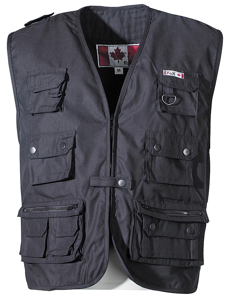 Die klassische Angler- und Outdoorweste mit insgesamt 14 Taschen, in die Sie bequem Ihre benötigten Utensilien packen können. Aber nicht nur für Angler, sondern auch für Jäger und Förster ist die Weste ein idealer Begleiter. Damit nichts verloren geht, sind die Taschen mit Druckknöpfen oder Reißverschlüssen verschliessbar. Auf dem Rücken befindet sich eine große Stautasche mit seitlichem Eingriff.