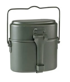 Das 3-teilige BW Kochgeschirr nach TL der Bundeswehr. Das Kochset kann in 3 Teile auseinander genommen werden und beinhaltet somit Kessel, Suppeneinsatz und Deckel. Dieses Aluminiumgeschirr kann sowohl über offenem Feuer, als auch auf Gas- oder Esbitkocher verwendet werden.