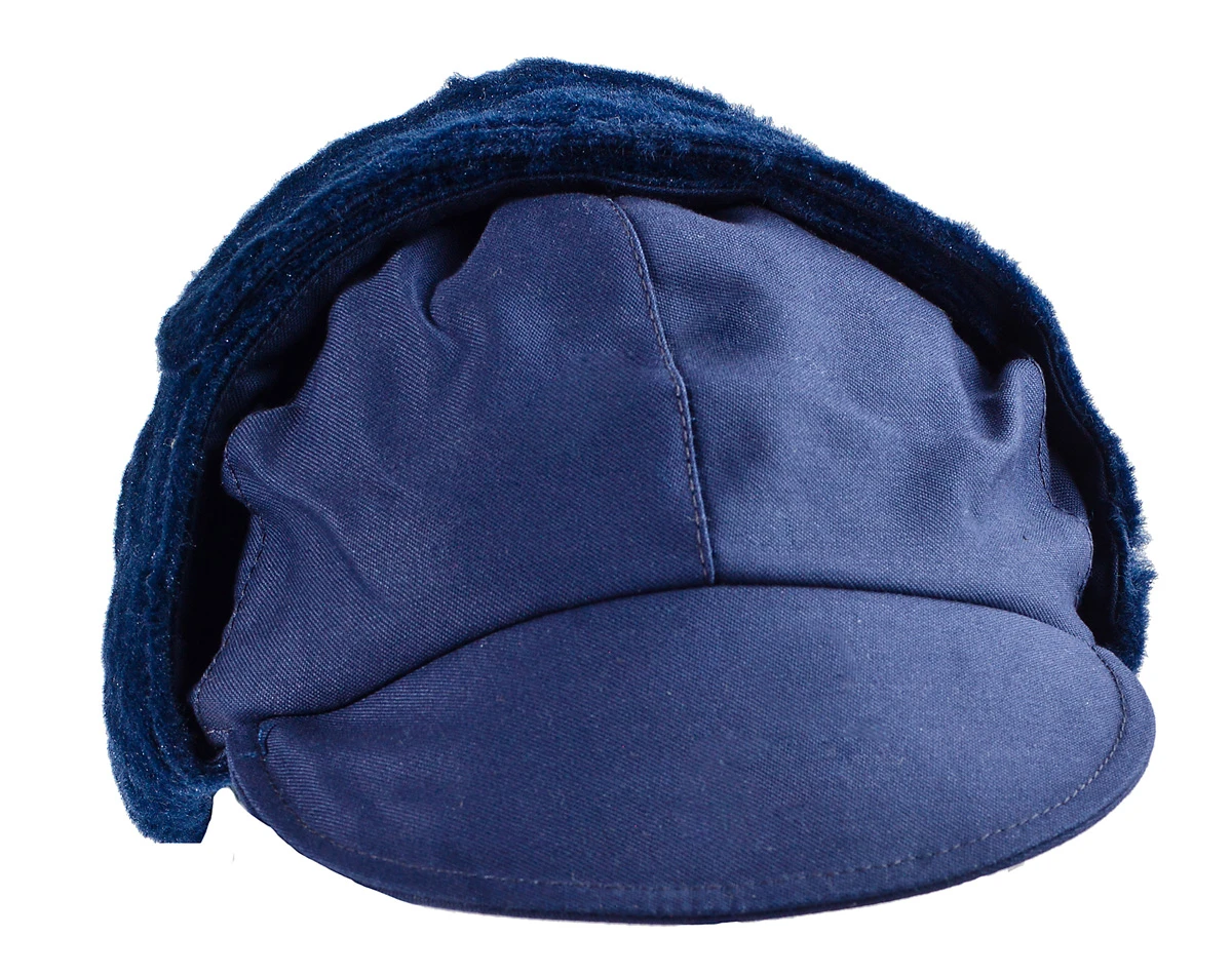 Die Bundeswehr Wintermütze in blau mit Webpelzfutter und abklappbaren Ohrenschützer. Der Ohrenschutz kann oben zusammengeklettet werden. Herunter geklappt hält er die komplette Nacken- und Halspartie warm.