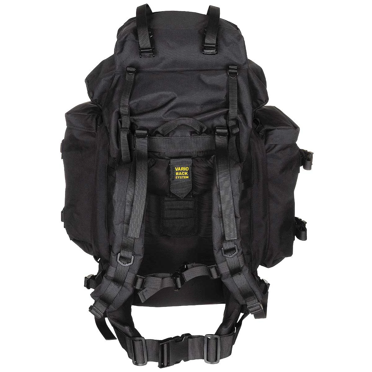 Der große Bundeswehr Rucksack Mountain mit 100 Liter Volumen (Rucksack 80L + Daypacks 20L). Dank des individuell verstellbarem Vario-Back-Tragesystems ist der Rucksack für alle Körpergrössen geeignet. Der Rucksack ist sehr vielseitig einsetzbar. Die seitlichen Daypacks können abgenommen werden, so dass der Hauptrucksack noch 80 Liter Packvolumen bietet. Ausserdem können die 2 Daypacks per Klett und Reißverschluss zu einem eigenständigen kleinen 40 Liter Rucksack kombiniert werden. Die aufwendig gestaltete Rückenpolsterung sorgt für eine sehr gute Hinterlüftung um Schweiss zu vermeiden und einen hohen Tragekomfort zu bieten. Diverse Schlaufen und Kompressionsgurte sorgen für die Sicherung des Inhalts und die Möglichkeit, auch aussen noch Schlafsack, Isomatte o.ä. anzubringen.