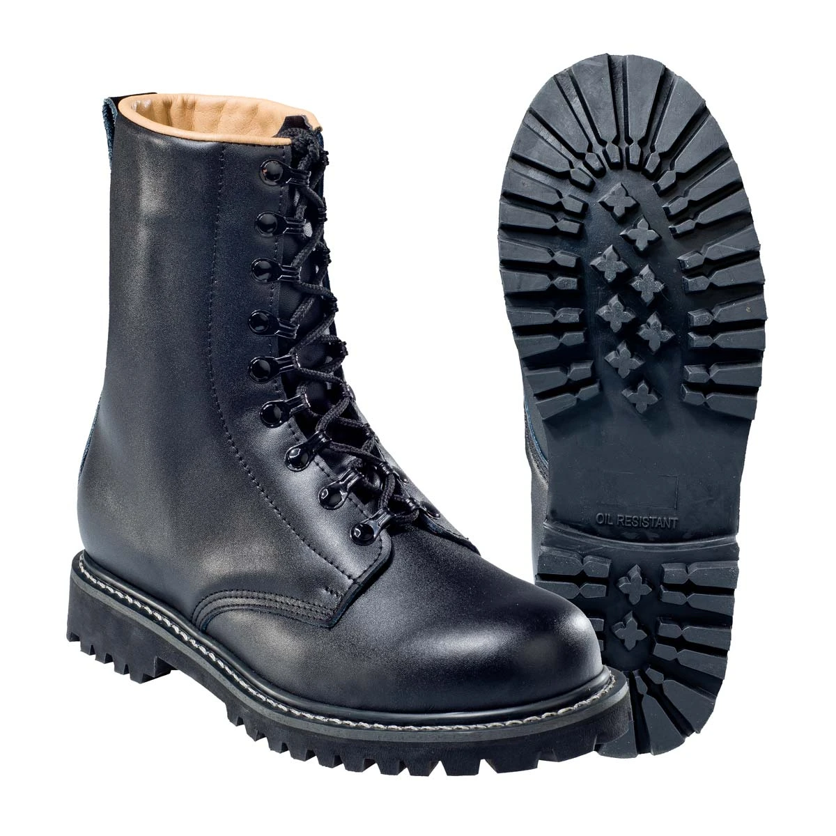 Der klassische ledergefütterte BW Springerstiefel mit 9-Loch Schnürrung ist ein idealer Allroundstiefel. Dank der stabilen Sohle und der Zehenverstärkung ist er für jeden Einsatz im Gelände oder Beruf gewappnet. Eine spezielle Beschichtung erhöht die Widerstandsfähigkeit gegen Wetter und Verschleiß. Das Schnellschnürrsystem ermöglicht ein rasches An- und Ausziehen.