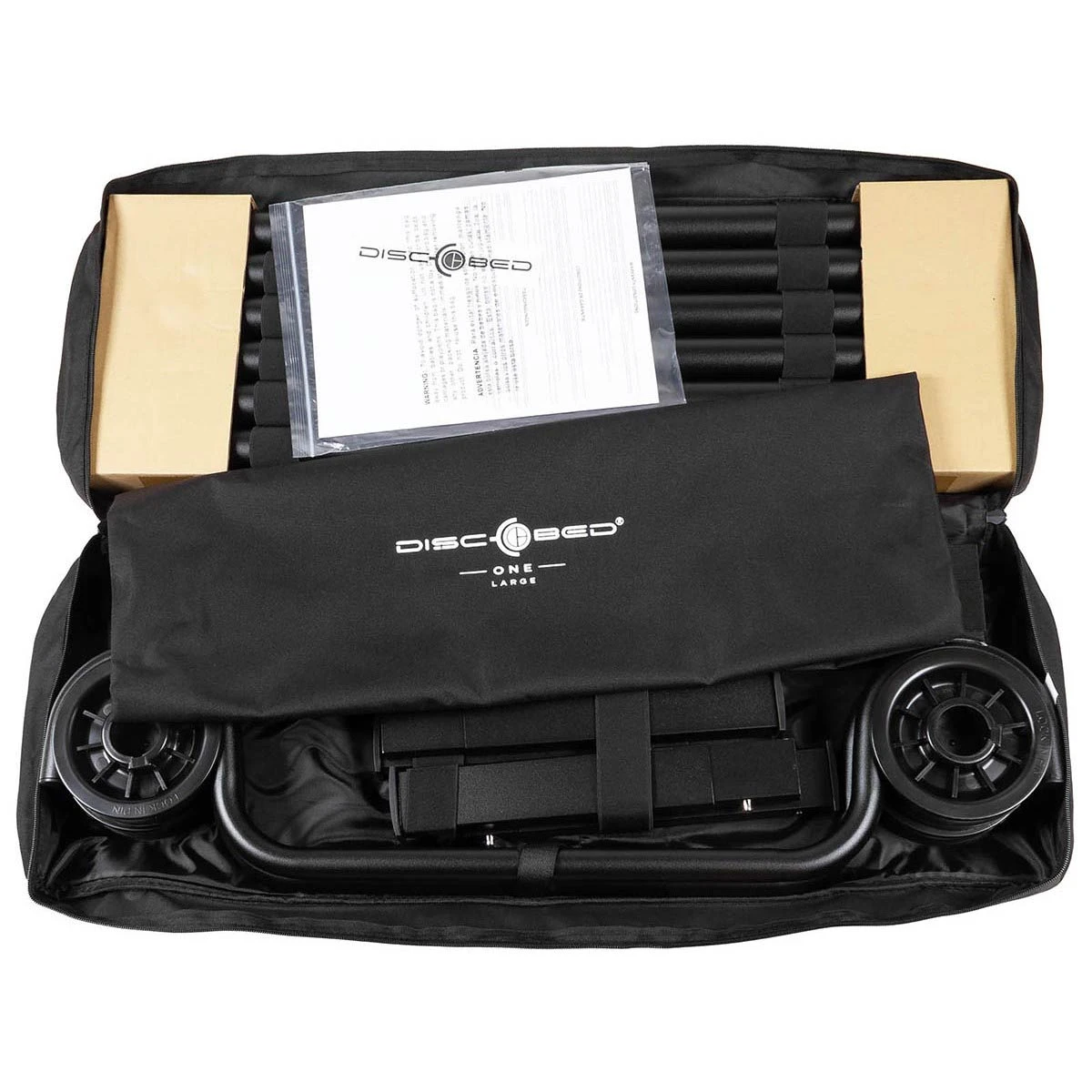 Das Disc-O-Bed Feldbett One L ist ein super kompakt zusammen klappbares Bett mit einer Traglast von 150kg. Dank der durchdachten Falttechnik kann das Outdoor- und Gästebett praktisch in die mitgelieferten Tragetasche verpackt und im Auto transportiert oder auch im Schrank gelagert werden. Die Montage ist ganz einfach ohne Wekrzeug möglich. Der stabile Bezug aus 600D Polyester ist abnehmbar und dadurch einfach zu reinigen.