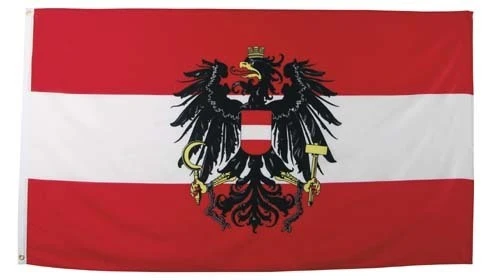 Wetterfeste Flagge (Österreich mit Adler) aus reißfestem Polyester in der Grösse 150x90cm. Der hochwertige Siebdruck sorgt für hohe Farbbrillanz der Fahne bei jedem Wind und Wetter.