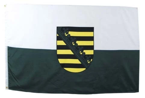 Die sächsische Flagge ist eine sogenannte Bikolore, besteht aus 2 waagrechten Streifen in den Landesfarben weiß und grün. Mittig befindet sich das sächsische Wappen.