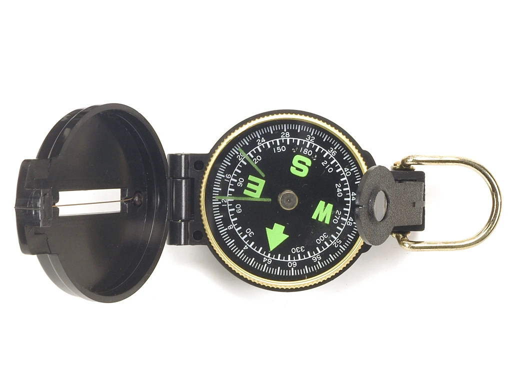 Der günstige US Kompass Australia mit flüssigkeitsgedämpfter Nadel. Im Sucher befindet sich ein Vergrösserungsglas zum einfacheren Justieren der Marschrichtung.