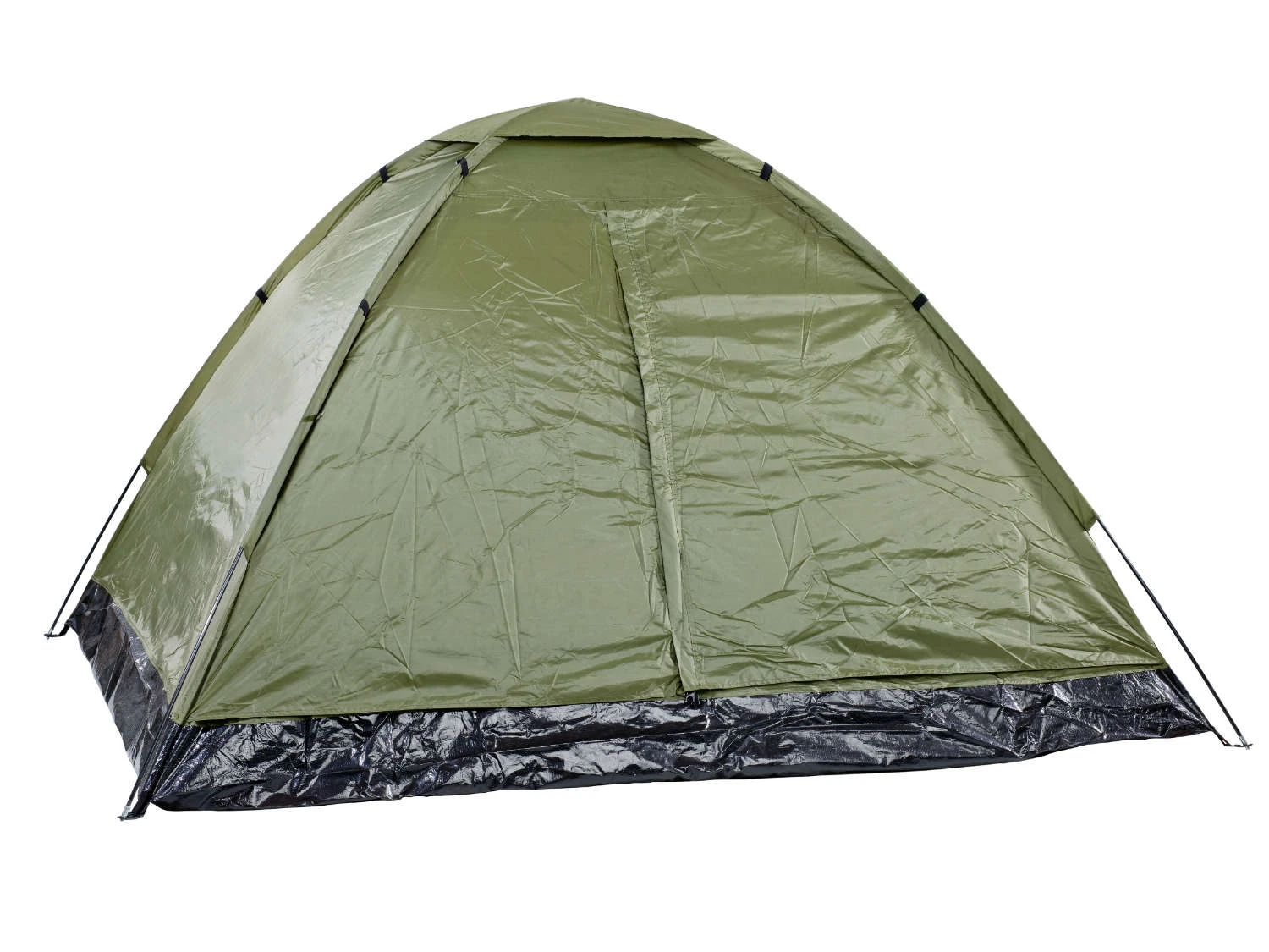 Das Kuppelzelt Monodome von stockA&B ist ein supergünstiges Einsteigerzelt für bis zu 3 Personen und durch sein Leichtgewicht auch ein idealer Begleiter auf Motorrad-, Fahrrad, oder auf Trekkingtouren, da es mit einem sehr geringen Packmass zu verstauen ist. Die einwandige Kuppelbauweise ist selbsttragend, und wird nach dem Aufbau per Heringe im Boden fixiert. Verschiedene Zelttaschen innen helfen, um Ordnung zu halten und kleinere Utensilien wie Taschenlampe, Smartphone oder Wanderkarte stets griffbereit zu halten. Der Moskitonetzeingang schützt vor Ungeziefer und sorgt bei Hitze für eine ständige, angenehme Belüftung in der Schlafkabine.