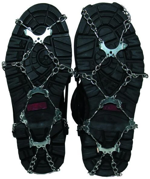 Die Schuh Schneeketten von MFH mit hochwertiger Metallkette. Kombination aus 8 Schneeketten-Griffzacken sorgen für sicheren Halt in Quer- und Längsrichtung. Die Schuhschneeketten sind universell für fast alle Schuh- und Stiefelgrößen passend.