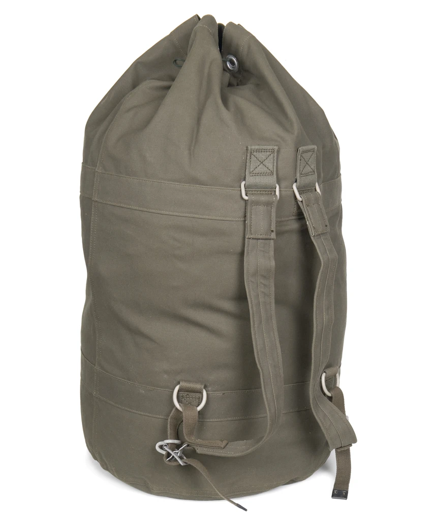 Extra robuster und geräumiger Seesack der deutschen Bundeswehr. Der Transportsack ist mit 2 stabilen Tragegurten versehen und kann somit als Rucksack getragen werden. Per Seesack Verschlussbügel oder handelsüblichem Karabiner wird der Seesack über die Ösen oben geschlossen.