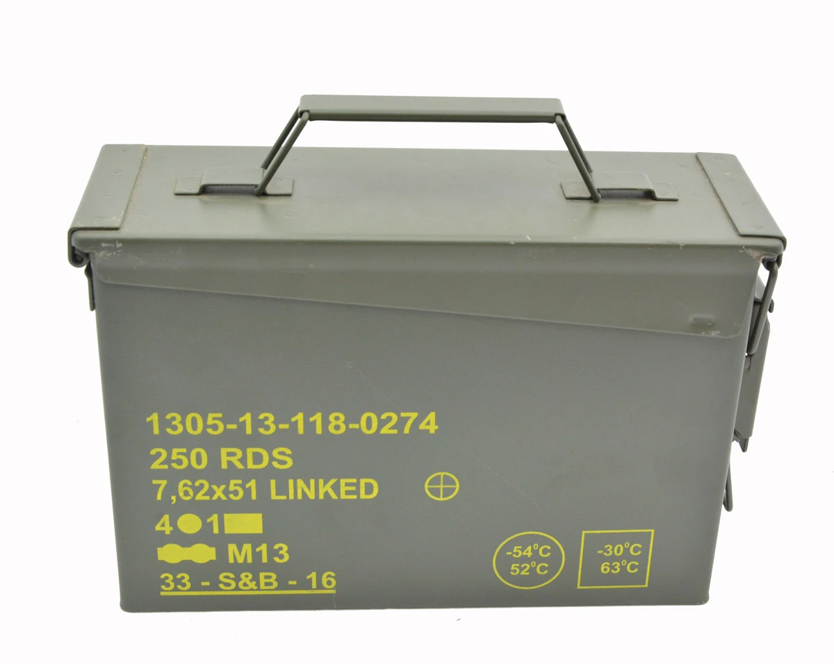 Die Original Munitionskiste der US Army in Größe 1 ist ideal zum sicheren Aufbewahren verschiedenster Gegenstände. Durch die Gummidichtung im Deckel der neuwertigen Kiste ist der Inhalt geschützt vor Schmutz, Regen und Spritzwasser. Ein klappbarer Tragegriff sorgt für einen bequemen Transport. Die Munitionskiste ist so gefertigt, dass diese stabil gestapelt werden kann. Die Kiste ist neuwertig mit allen original Beschriftungen und Aufkleber. Lediglich kleinere Lagerspuren können vorhanden sein.