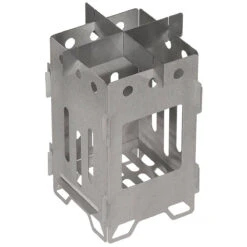 Der Steck-Hobo groß von Fox Outdoor hat aufgebaut eine Grösse von 19,5x15x15cm und kann dabei auch für Pfannen oder Töpfe zum Kochen oder Braten verwendet werden. Der Steckhobo ist aus 100% Edelstahl gefertigt, wiegt dabei inkl. Tasche nur 490g und findet dabei zusammengefaltet mit einem Packmaß von nur 20x17x0,5cm noch in jedem Rucksack Platz. Zusammengebaut wird der Hobo-Kocher per einfachem Stecksystem, dadurch lassen sich die Einzelteile perfekt in der flachen Tasche verstauen. Den Brennstoff für den Kocher gibt es überall in der Natur – kleine Äste, Zweige, Laub oder Tierdung. Alternativ lässt sich natürlich auch Trockenbrennstoff, Brennpaste oder ähnliches verwenden. Der zerlegbare Outdoorkocher arbeitet nach dem Kamin-Prinzip: Dabe strömt die Luft von unten in den Kocher und gibt die Hitze, durch die Seitenwände geschützt, nahezu verlustfrei an das Kochgeschirr ab. Der Hobo ist dabei ein kleines Effizienzwunder. Schon mit wenigen kleinen Zweigen oder Trockenbrennstoff lässt sich Wasser innerhalb 4 Minuten zum Kochen bringen, Fleisch grillen oder Essen zubereiten.