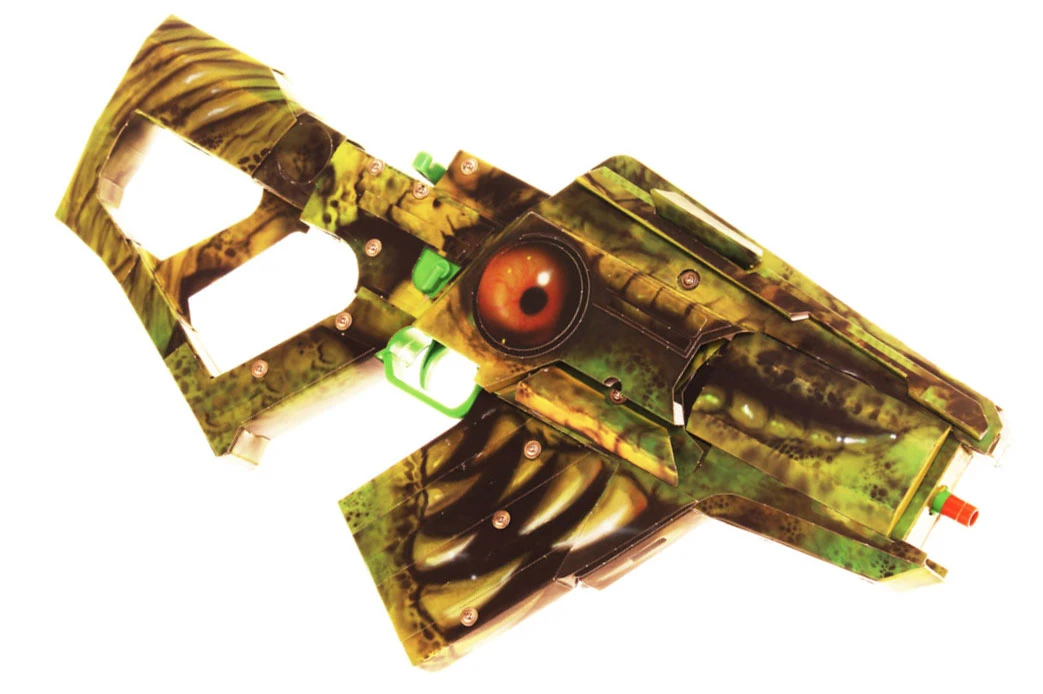 Basteln Sie sich Ihr eigenes Sturmgewehr aus 124 Einzelteilen. Alleine das Basteln und Zusammenbauen ist bereits ein großer Spaß für Groß und Klein. Das Gewehr besteht aus einem festen Kunststoffkern, der mit einem aus Pappe bestehendem Camouflagemuster verkleidet wird.
