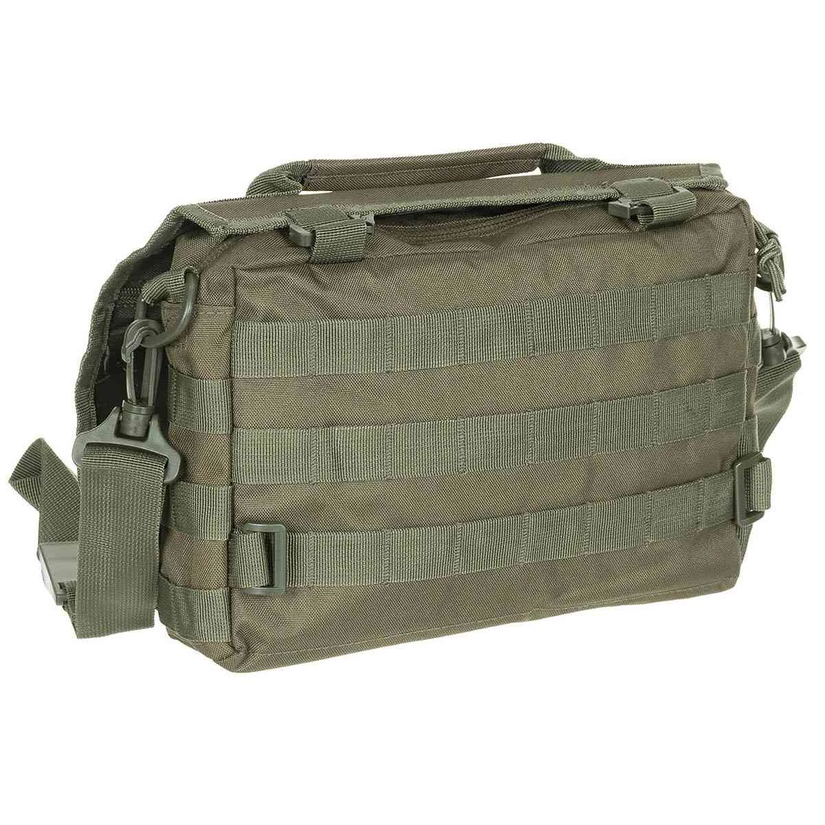 Die US Molle Schulter-Umhängetasche von MFH hat einen abnehmbaren und verstellbaren Schulterriemen mit breiter, angenehmer Polsterfläche. Der Deckel mit Tragegriff kann optional abgetrennt werden, so dass man direkten Zugriff auf die Molleschlaufen bekommt und diese entsprechend auf sich zugeschnitten erweitern kann.. Die Tasche ist umlaufend mit Molle Aufnahmeschlaufen ausgestattet. Auch das Hauptfach innen hat zusätzliche Aufnahmeschlaufen.