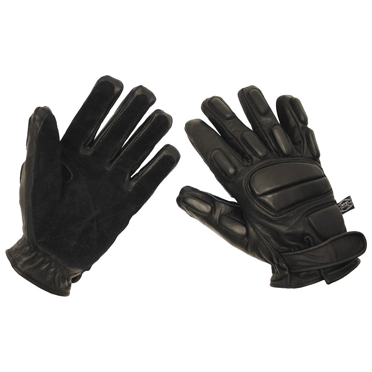 Die SEK Lederhandschuhe Protect sind, wie der Name schon sagt, Einsatzhandschuhe welche vor allem von Spezialeinheiten getragen werden. Dazu zählt nicht nur das SEK der Polizei, sondern auch MEK (Mobiles Einsatz Kommando), GSG9, Bundespolizei und natürlich Sicherheitsdienste. Vorteil dieser Handschuhe ist neben dem hochwertigen und sehr gut verarbeitendem Außenmaterial aus 100% Leder, sondern auch Protektion durch die auf dem Handrücken und Finger befindlichen Protektoren, welche einen Schlag auf die Hand abdämpfen. Das Futter ist mit schnitthemmenden DuPont™ Kevlar®-Faser versehen, welche vor Messerangriffen schützt. Beim Schießfinger wurde auf die untere Polsterung verzichtet, damit Sie, wenn Sie Ihre Dienstwaffe einsetzen müssen, keine Behinderung durch die Protektoren erfahren.
