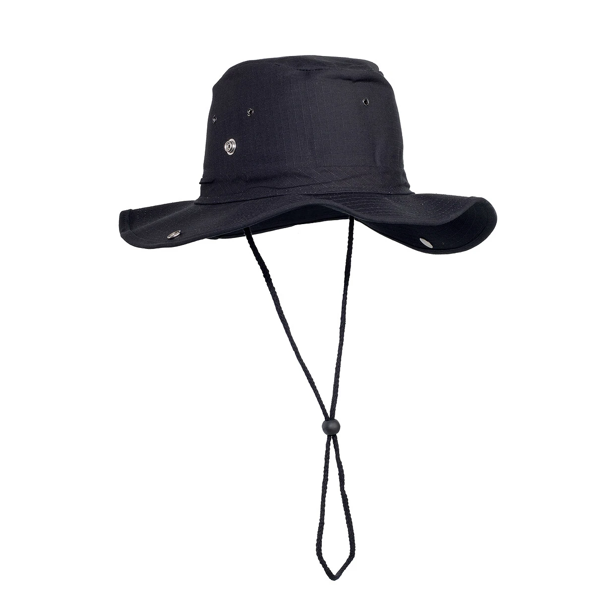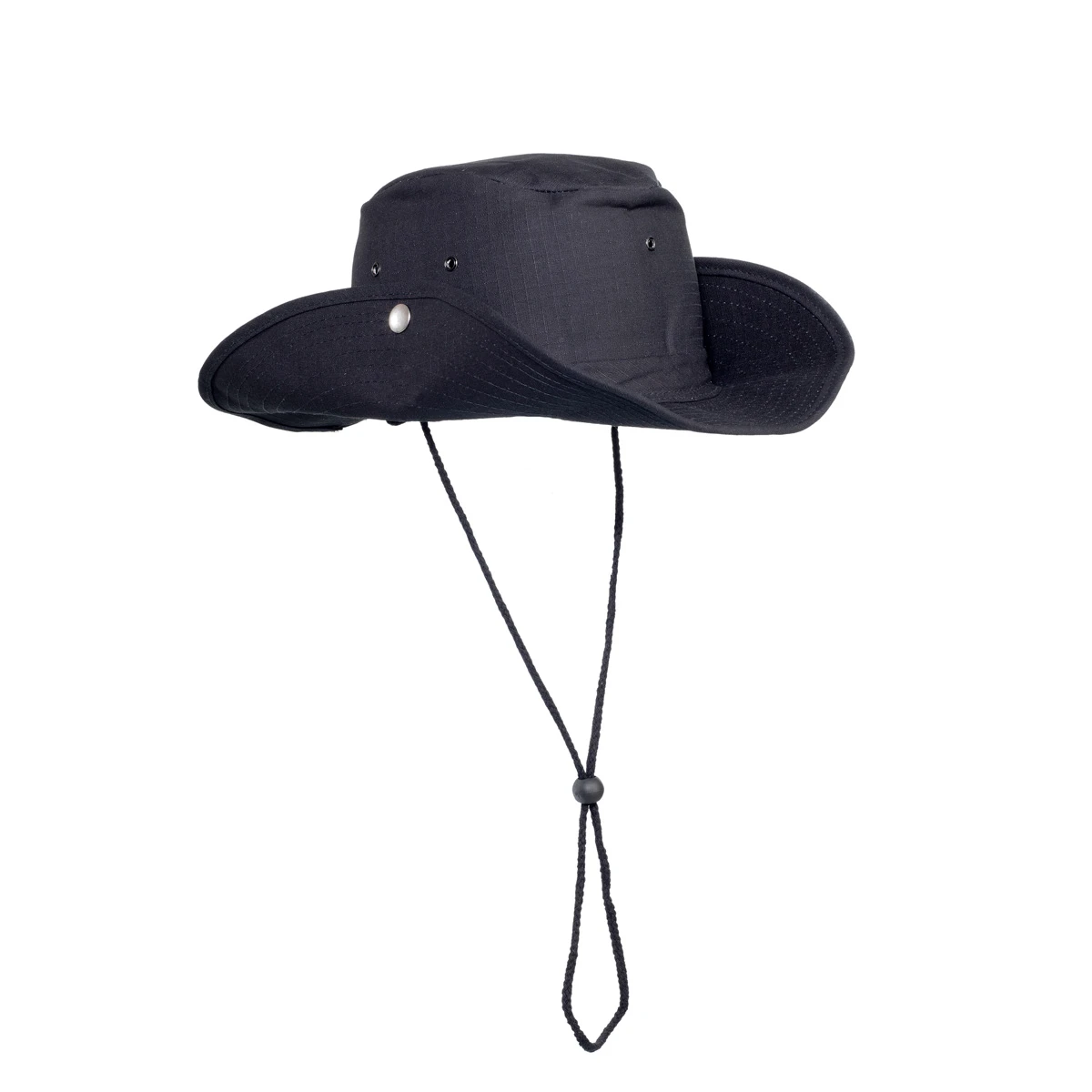 Der Australian Rangerhut mit seiner breiten Krempe spendet Schatten und dient auch als Regenschutz bei Freizeit, Reise und Arbeit. Das Ripstopmaterial ist leicht, stabil und super angenehm zu tragen. Über die seitlichen Druckknöpfe lässt sich die Krempe auch vorübergehend nach oben klappen. Dank verstellbarer Kordel hält der Hut auch an windigen Tagen.