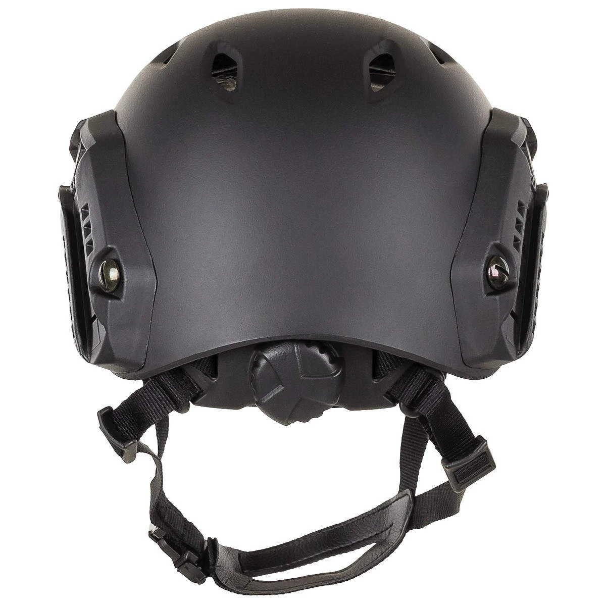 Originalgetreuer Nachbau des US Helm FAST-Fallschirmjäger aus hochwertigem ABS-Kunststoff. Die Grösse des Helmes ist per Drehverschluss einstellbar. Zwei seitlich angebrachte Schienen ermöglichen das Anbringen verschiedener Ausrüstungsgegenstände. Der Helm ist größenverstellbar per Drehverschluss, längenverstellbar durch das Kinn und Nackenband und die Klett-Innenpolster sind anpassbar. Somit sorgt der US Helm FAST-Fallschirmjäger für einen sicheren und festen Sitz.