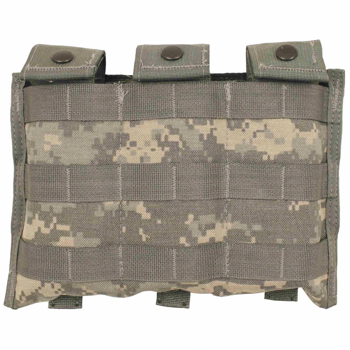 Die US Army Molle Magazintasche 3-fach in der Farbe at-digital hat eine Grösse von 26x18x3,5cm und bietet Platz für 3 Magazine. Die 3 Magazinfächer haben jeweils eine Grösse von 5,5×3,5x16cm. Die Original Tasche der US Army ist aus 100% Cordura hergestellt und ist daher nahezu unverwüstlich. 3 Molleschlaufen auf der Rückseite lassen die Tasche perfekt an jeden Molleträger wie Weste, Rucksack, Plattenträger etc. anbringen. Per Druckknopfverschluss werden die Magazine sicher in die Tasche verstaut, können aber über die Lasche am Deckel auch blitzschnell geöffnet werden. Die Vorderseite der Tasche ist wiederum mit Molleschlaufen versehen, an die weiteres Mollezubehör angehängt werden kann.