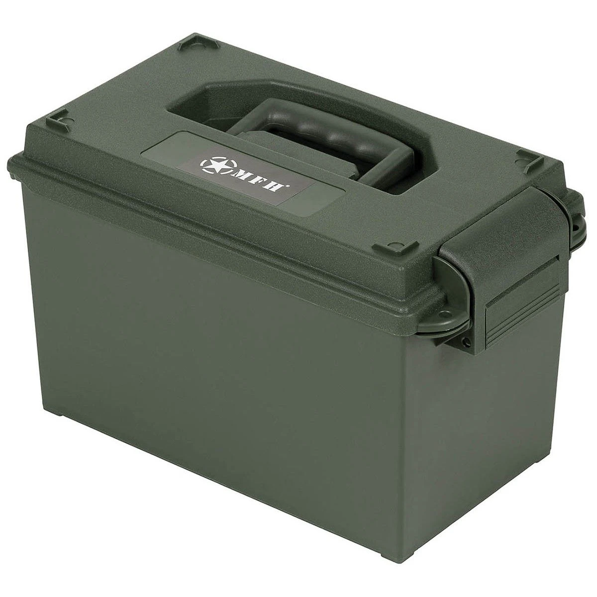 Hochwertiger Nachbau der US Munitionskiste in der Grösse 37x21x23,5 cm aus stabilem Hartkunststoff in oliv für Cal. 50mm und zudem absperrbar. Durch die Gummiabdichtung ist die Kiste absolut wasserdicht. Ein Tragegriff sorgt für angenehmen Transport. Die Kiste wird sehr gerne von Air Soft Spielern verwendet. Aber auch als Werkzeugbox oder sonstige Aufbewahrungsbox ist die Kiste hervorragend geeignet.