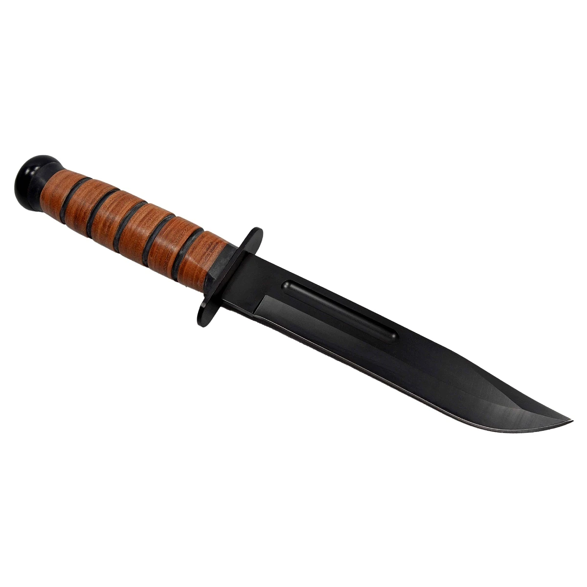 Die legendäre Qualität des USMC Kampfmesser groß machte es während des 2. Weltkrieges zum Inbegriff für eine ganze Messergattung. Noch heute ist das bekannteste Kampfmesser der Welt in der Truppe weit verbreitet. Das Allzweck-Messer liegt dank Messergriff aus gepressten Lederscheiben unvergleichbar gut in der Hand. Geliefert wird das Allzweckmesser inkl. hochwertiger Lederscheide mit Gürtelschlaufe und Griffhalterung.